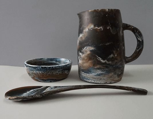 artículos decorativos en pewter, así como joyas únicas de autor.