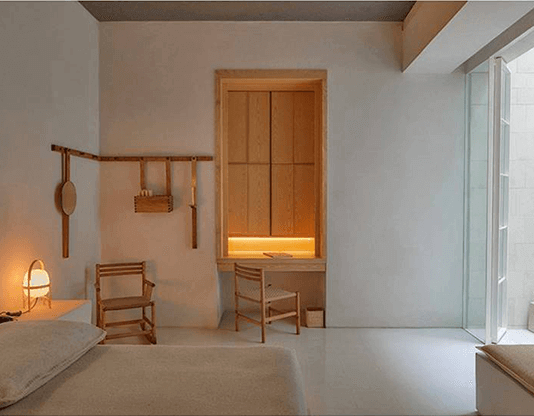 El sofisticado hotel boutique situado en el segundo y tercer piso es a la vez minimalista y lujoso. Sus interiores simples enmarcan un énfasis en la privacidad y el uso de materiales de primera clase. Patios interiores bañados por luz natural y mobiliario inspirado en la simplicidad y utilidad son elementos característicos de sus habitaciones.